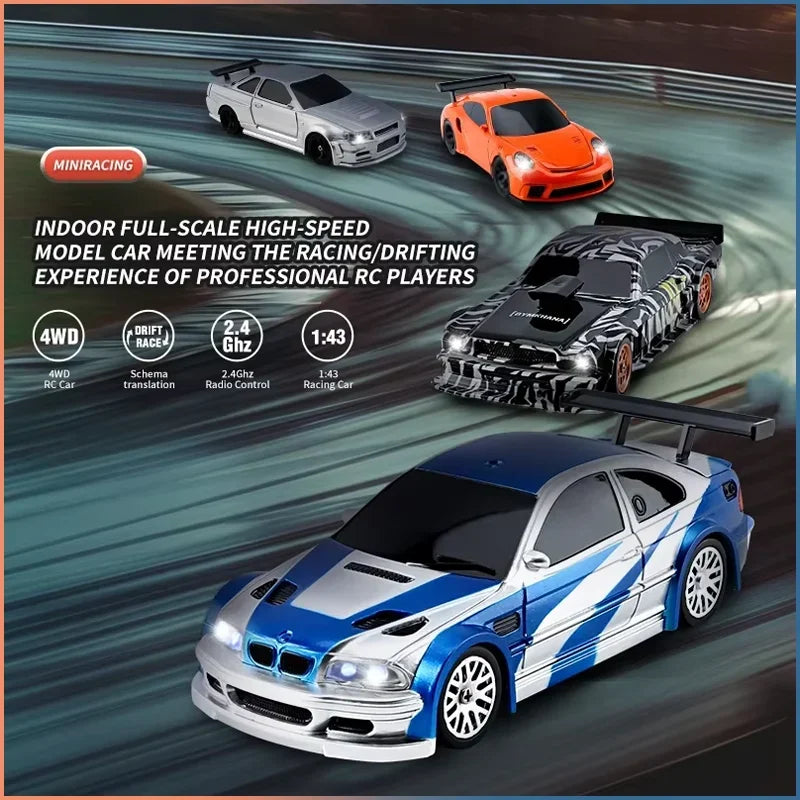 ميني باور ريسر - سيارة دريفت تعمل بالتحكم عن بُعد بمقياس 1:43 مع أداء دفع رباعي كامل الحجم