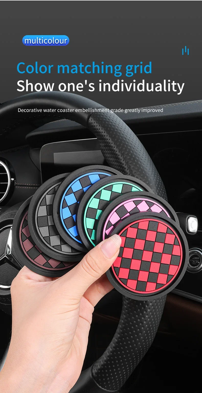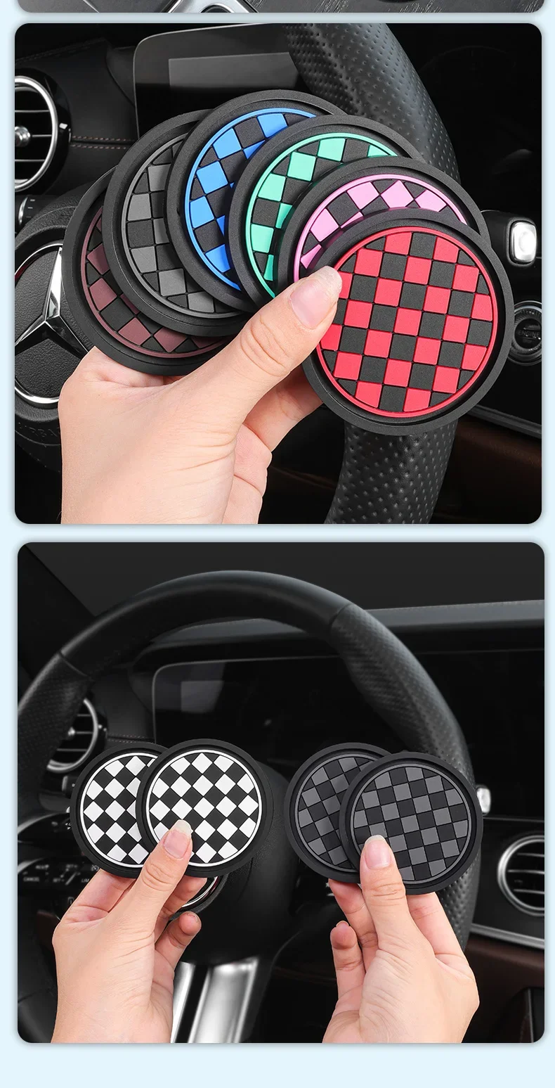 Checkered Pattern Car Cup Holder Coasters - Anti-Slip Shock Absorbing Inserts