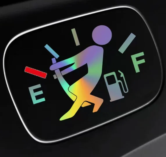 This product is a high-quality vinyl fuel tank sticker designed to add a touch of personality and humor to your vehicle's exterior. This creative accessory is the perfect choice for car enthusiasts and drivers who want to customize their fuel door with a fun, eye-catching graphic that stands out during every pit stop.
