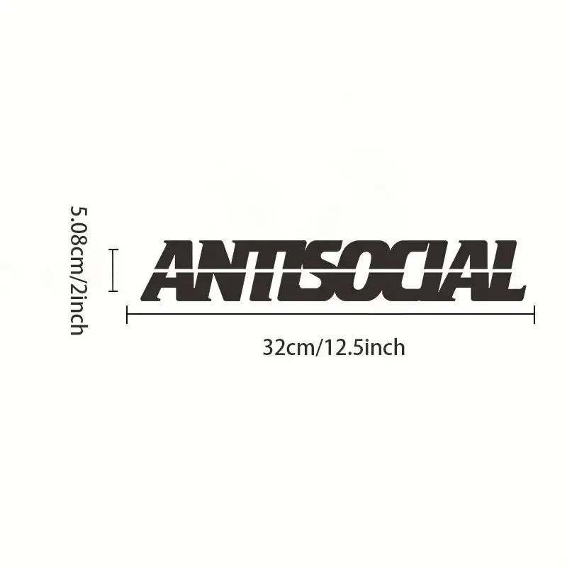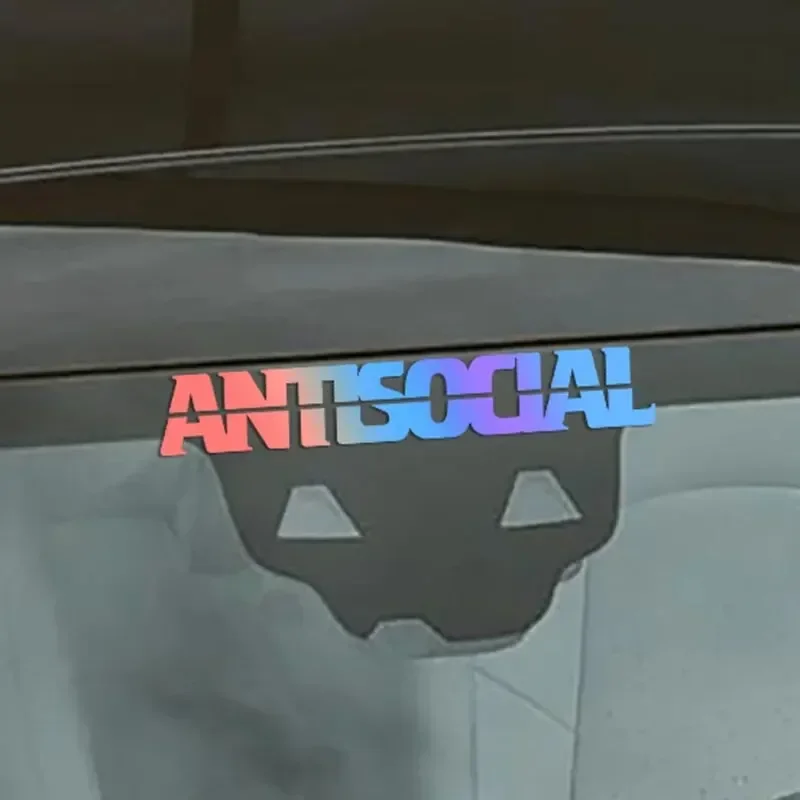 Machen Sie damit eine Erklärung auf der Straße Antisocial Car Sticker Decal, entwickelt für Fahrer, die gerne mit Stil und Einstellung abheben. Mit einer eleganten, modernen Schriftart und einem langlebigen Klebstoff verleiht dieser Aufkleber jedem Auto, Laptop oder einer Oberfläche Persönlichkeit und lässt alle Ihre Stimmung wissen, ohne ein Wort zu sagen.