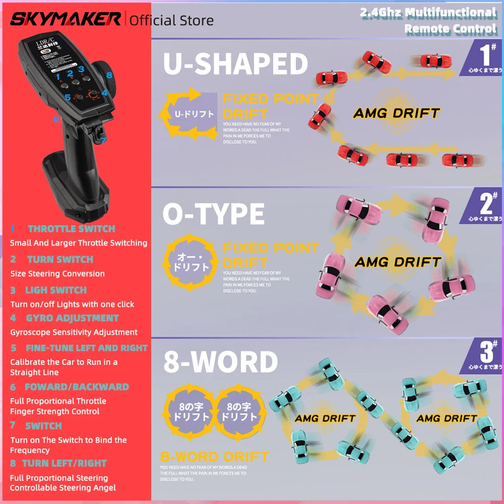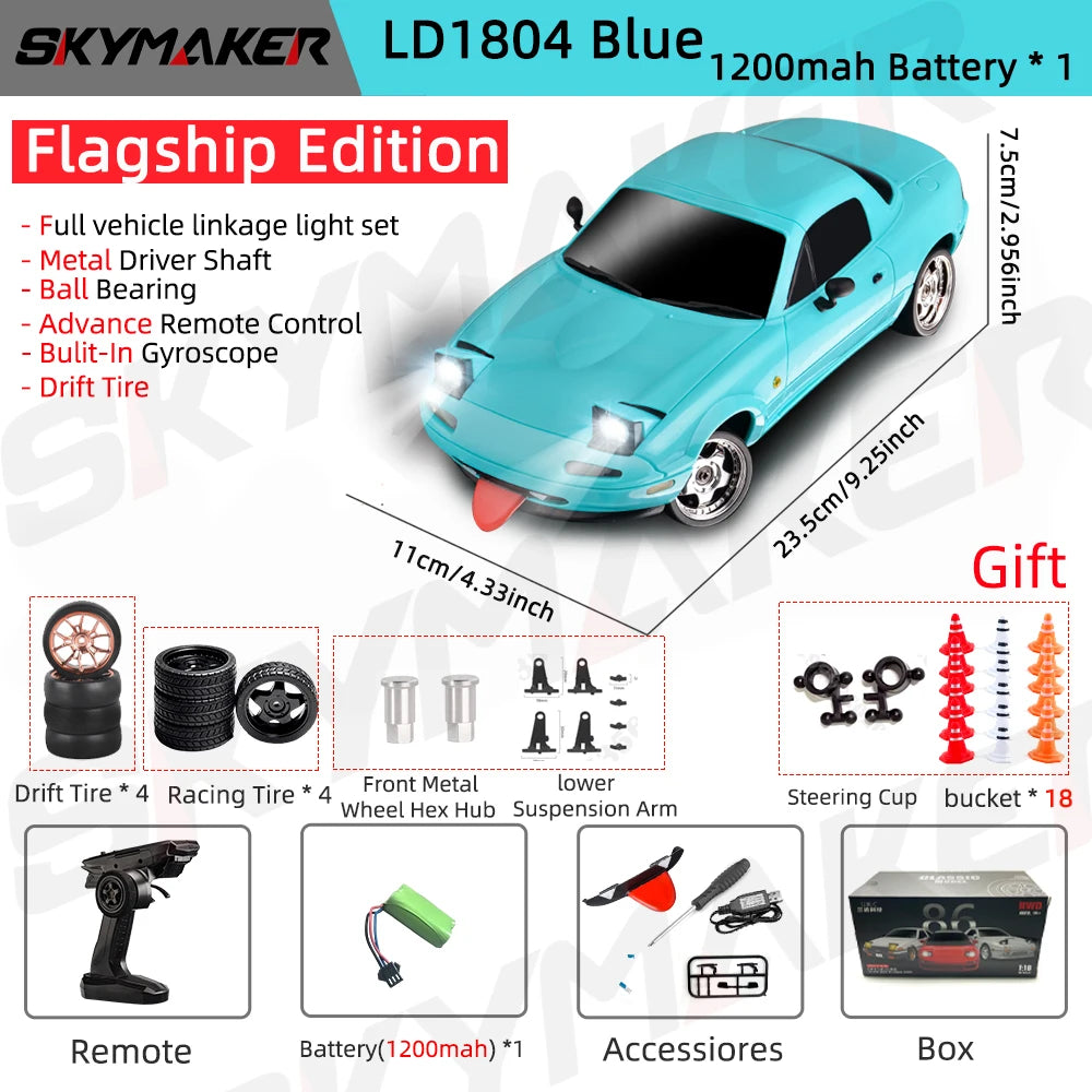 Vive el espíritu del drifting clásico con este inspirado coche de drifting RC a escala 1:24 , equipado con funciones avanzadas para máxima diversión y rendimiento. Con giroscopio integrado, engranajes metálicos mejorados y ángulo de dirección controlable, ofrece derrapes suaves, estabilidad y una acción de carreras realista. Un coleccionable perfecto tanto para aficionados al RC como para entusiastas de los coches.