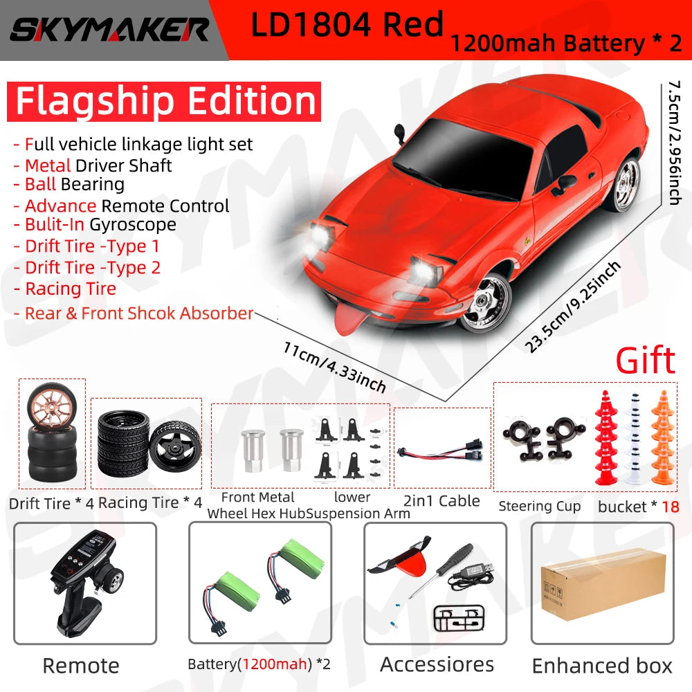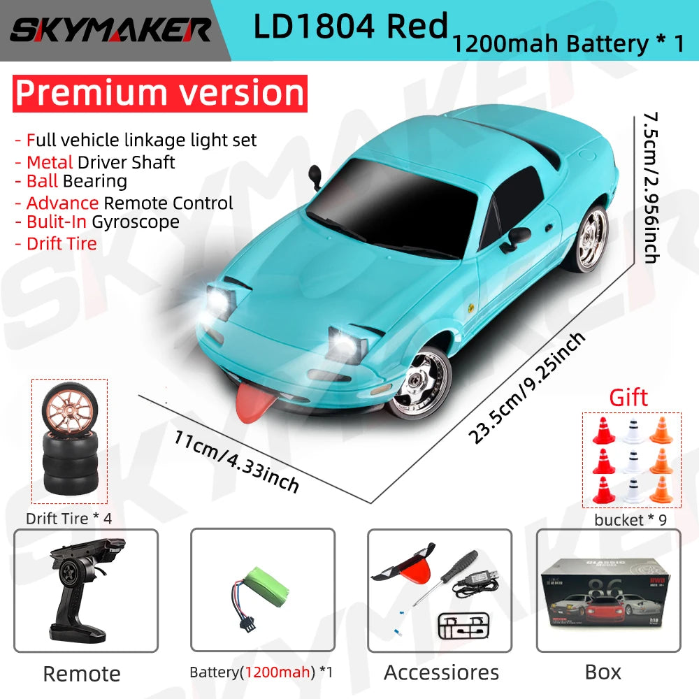 Retro Drift Icon: coche RC a escala 1:24 con giroscopio y engranajes metálicos mejorados