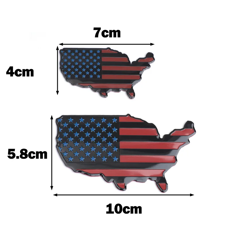 Montrez votre fierté nationale avec ce USA Map Car Emblem, avec le design du drapeau américain dans un badge durable et élégant. Parfait pour les voitures, les camions, les motos ou même comme accessoire décoratif, il met en évidence votre amour pour les États-Unis.