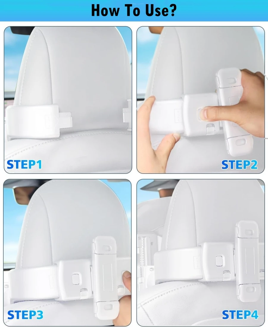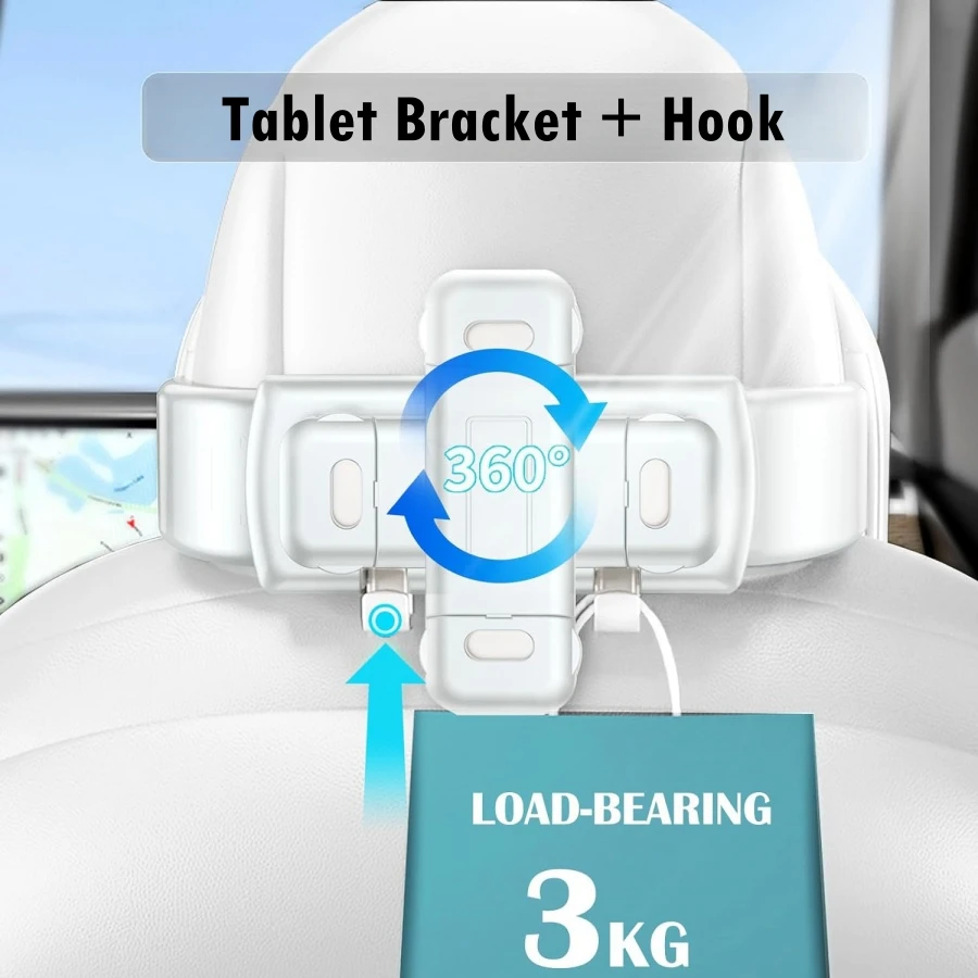 Adjustable Mounting System: Features a height-adjustable headrest with brackets and a hidden hook, ensuring it can be positioned perfectly for different users and provides a stable fit.