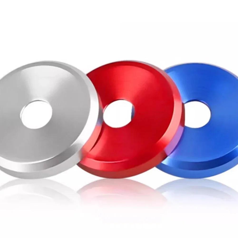 Design & Graphic: Features a precision-engineered, circular ring design with a beveled top for a modern look. They are available in a variety of vibrant metallic finishes, including red, blue, and silver, to match any custom interior theme.