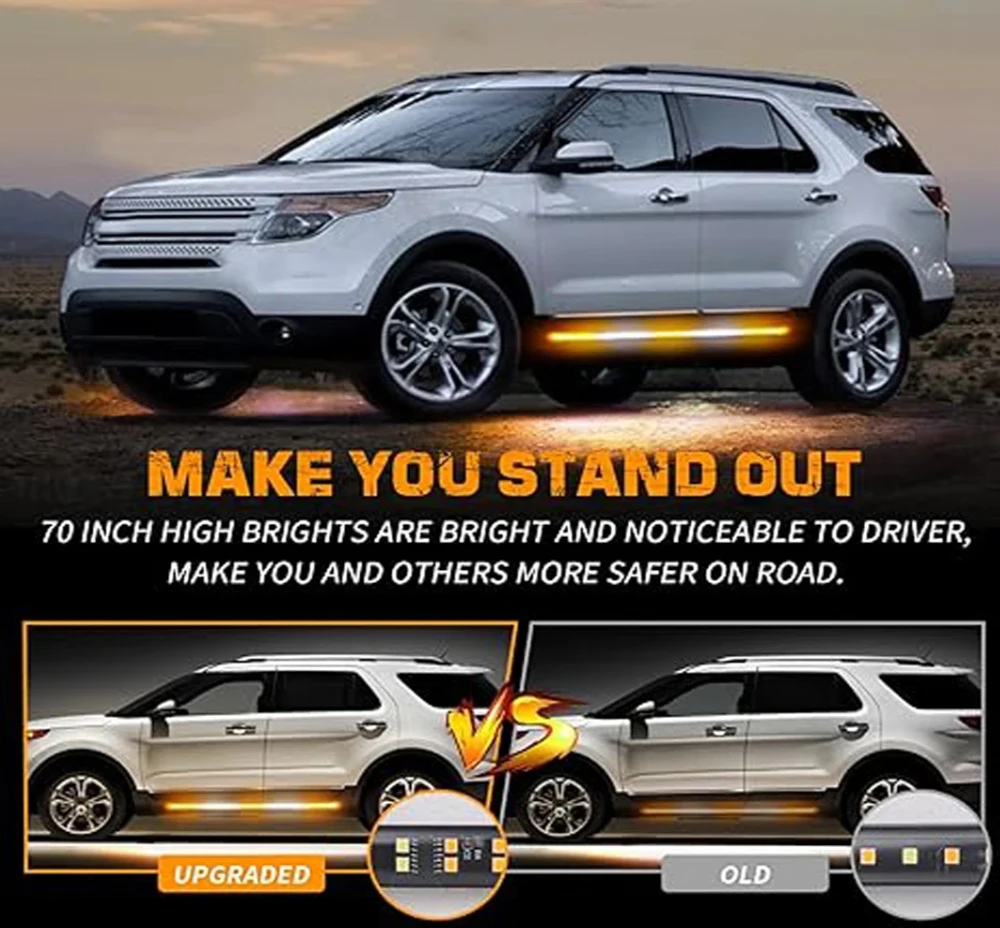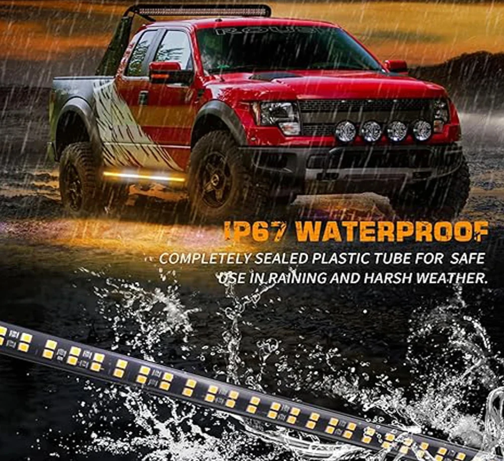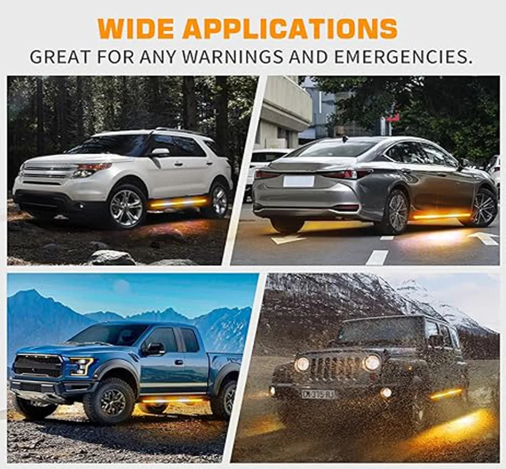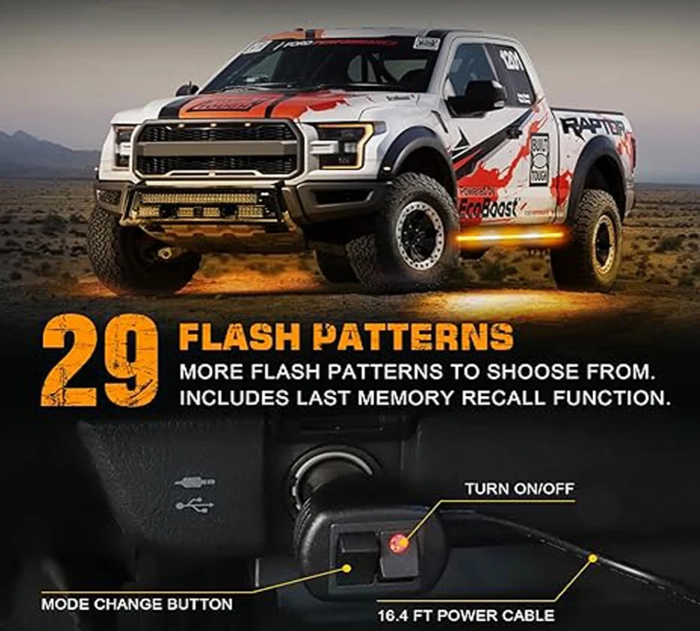 Amber Emergency LED Warning Strips – 29 Flash Modes for Trucks, SUVs & Off-Road Vehicles