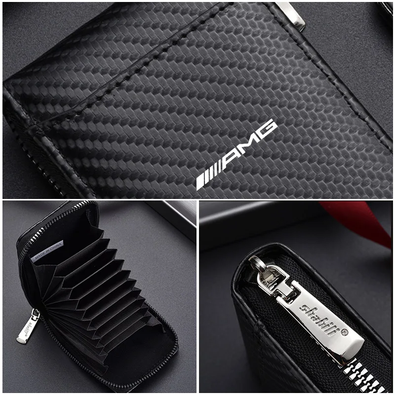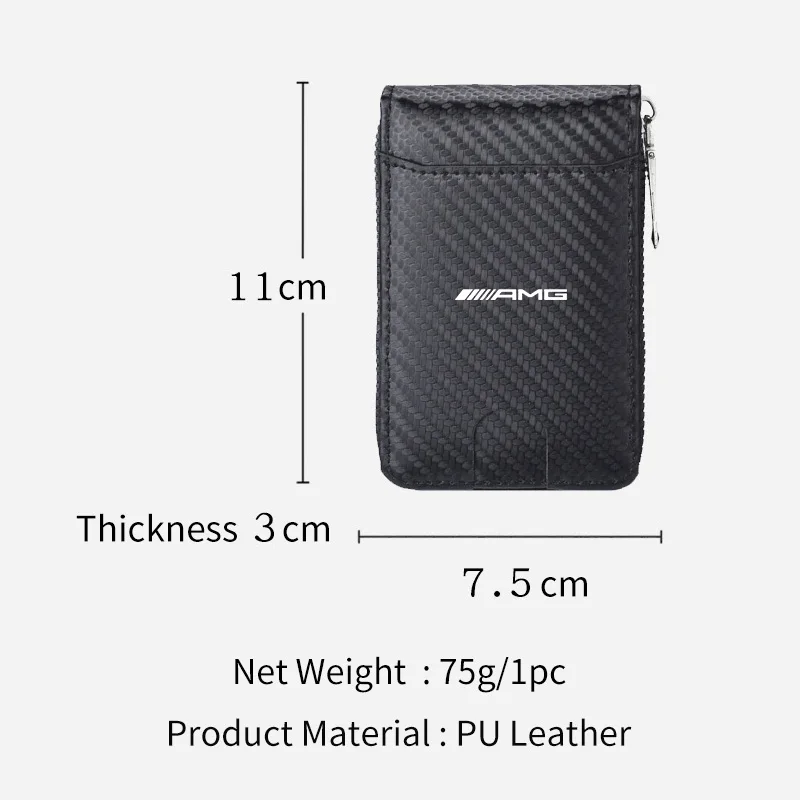 Show your passion for precision engineering with the AMG Carbon Fiber Wallet, designed for drivers who appreciate both style and performance. Crafted from high-quality carbon fiber material (or carbon-style finish, depending on model), this wallet offers a lightweight yet durable construction that resists wear while maintaining an elegant, sporty look inspired by AMG interiors.