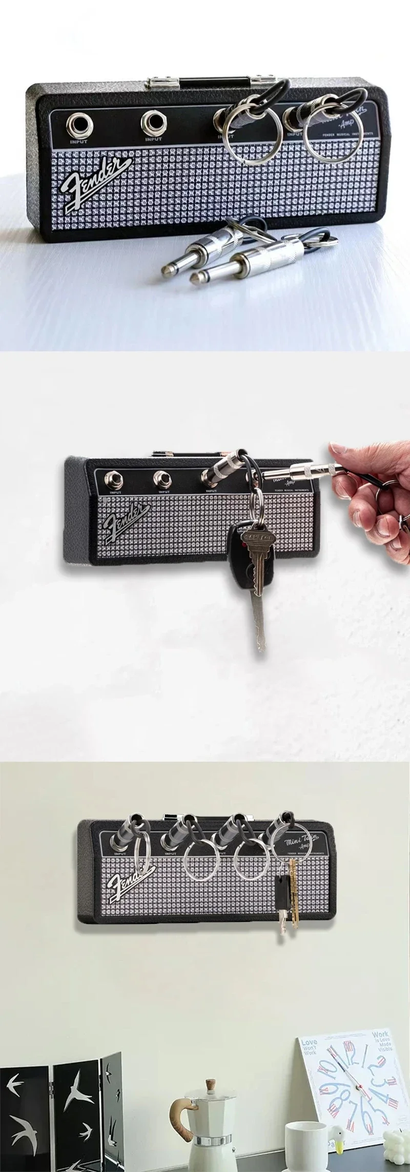 Add a rock ‘n’ roll vibe to your everyday routine with the Amplifier Style Key Holder. Designed to mimic the look of a classic guitar amp, this key holder features four jack plug keychains that insert directly into the amp-style inputs, keeping your keys secure while showcasing a unique and stylish design. Perfect for music lovers, guitar players, and anyone who appreciates creative home décor.