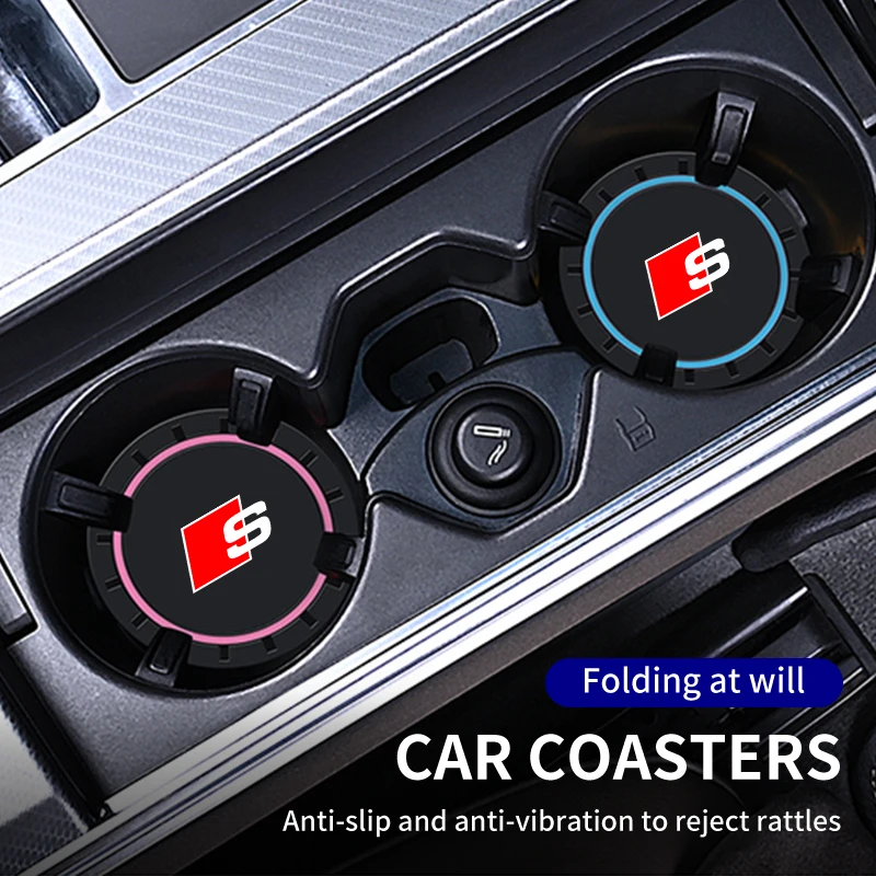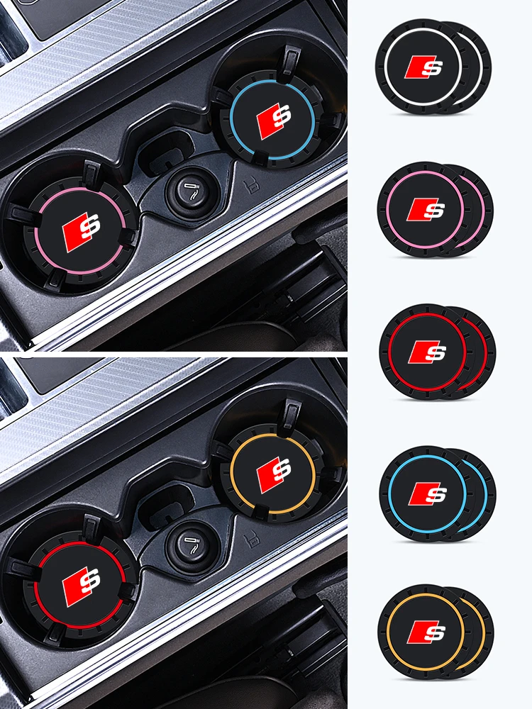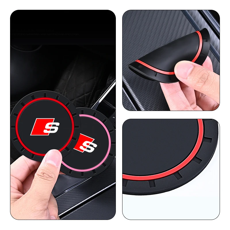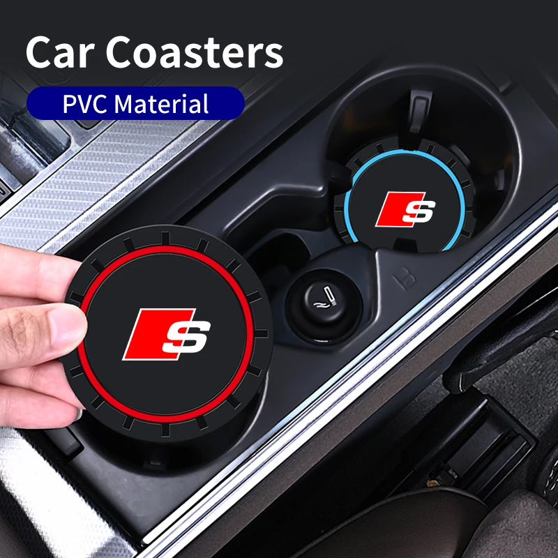 This product is a pair of professional car cup holder coasters designed to protect your vehicle's center console from spills, condensation, and stains. These mats are the perfect accessory for drivers seeking a practical way to keep their interior clean while adding a personalized, sporty touch to their cabin.