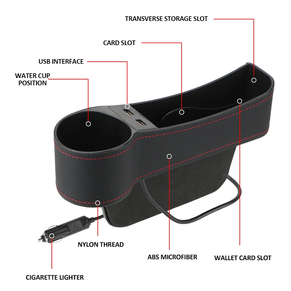 Maximize your car’s interior space while keeping your devices powered with the Car Seat Gap Storage Box with USB Charger. Designed to fit between your seat and center console, this organizer prevents items from falling into hard-to-reach gaps while providing convenient storage for phones, keys, coins, and more — all while charging your devices on the road.