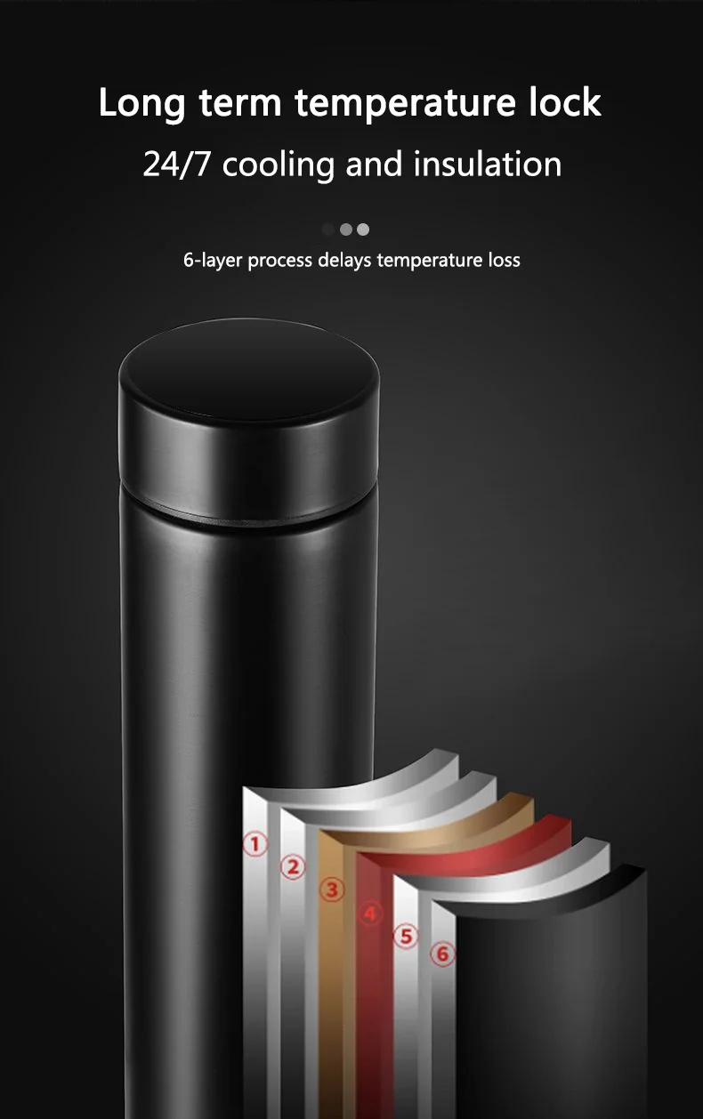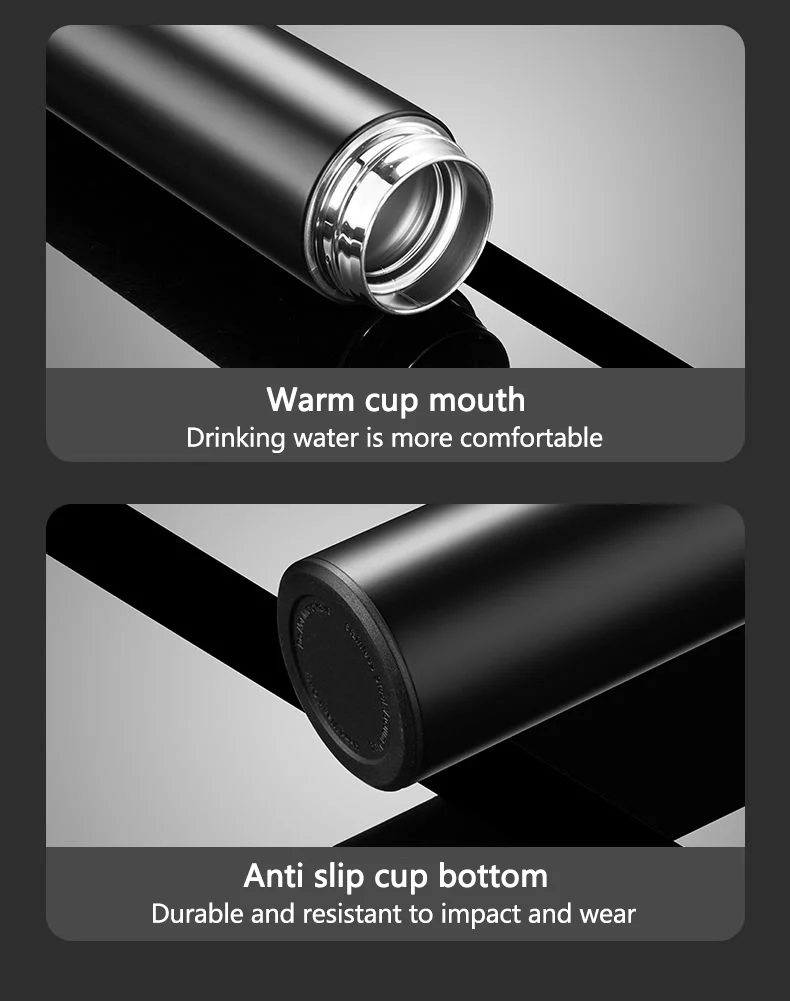 Featuring an intelligent LED temperature display, it shows the exact drink temperature with a simple touch — no guessing, no burning your tongue, and no surprises. Its double-wall stainless steel construction ensures long-lasting heat or cold retention throughout the day.