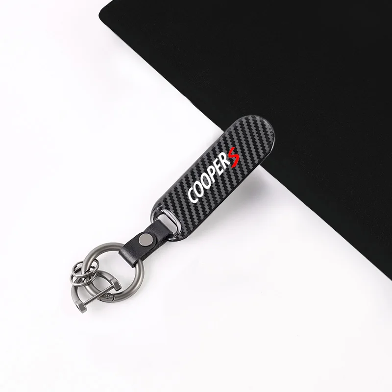 Crafted from durable metal alloy with carbon fiber-style detailing, this keychain is lightweight, strong, and resistant to scratches. Perfect for keys, backpacks, or as a gift for any Mini enthusiast.