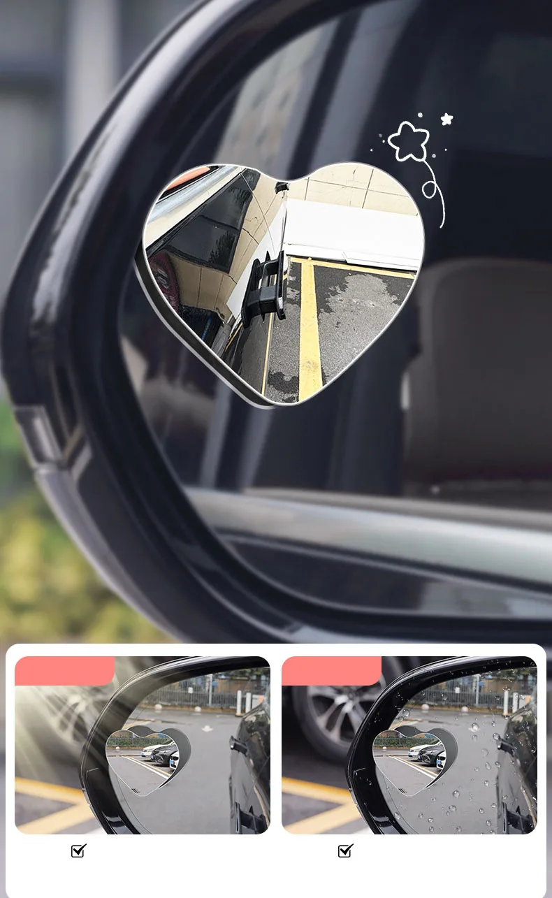 Add charm and safety to your car with the Heart-Shaped Car Blind Spot Mirror, a stylish convex mirror that expands your field of view while giving your vehicle a touch of personality. Designed for better side visibility, it helps reduce blind spots and makes lane changes, parking, and tight maneuvers much more secure.