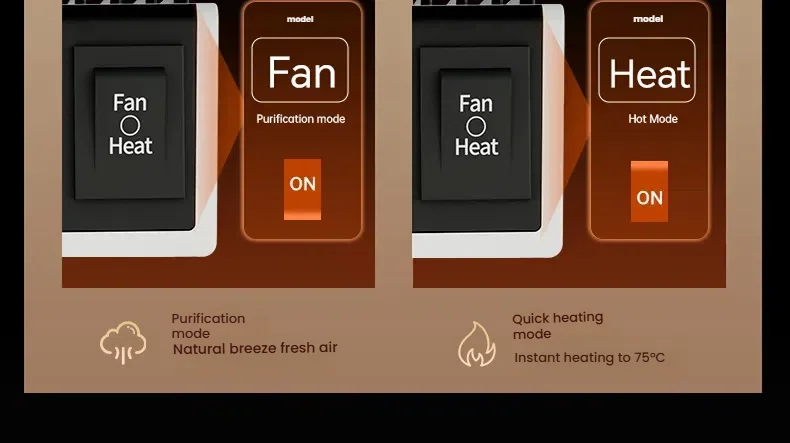 Instant Heating – Quickly warms up your space and helps defog or defrost windows.