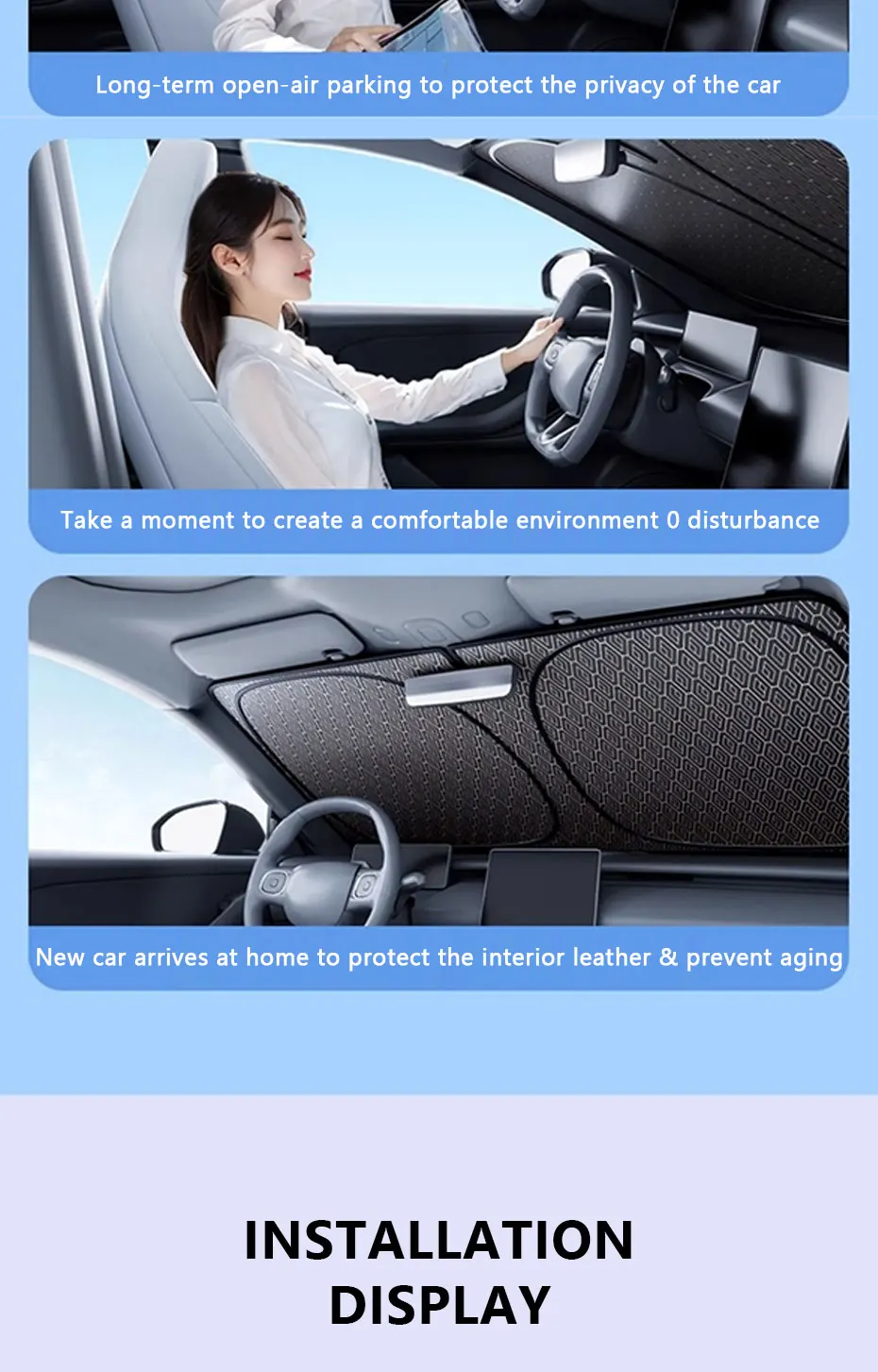 Unlike ordinary sunshades, this laser-coated model combines performance and style, offering premium UV protection and a futuristic touch to your car interior.