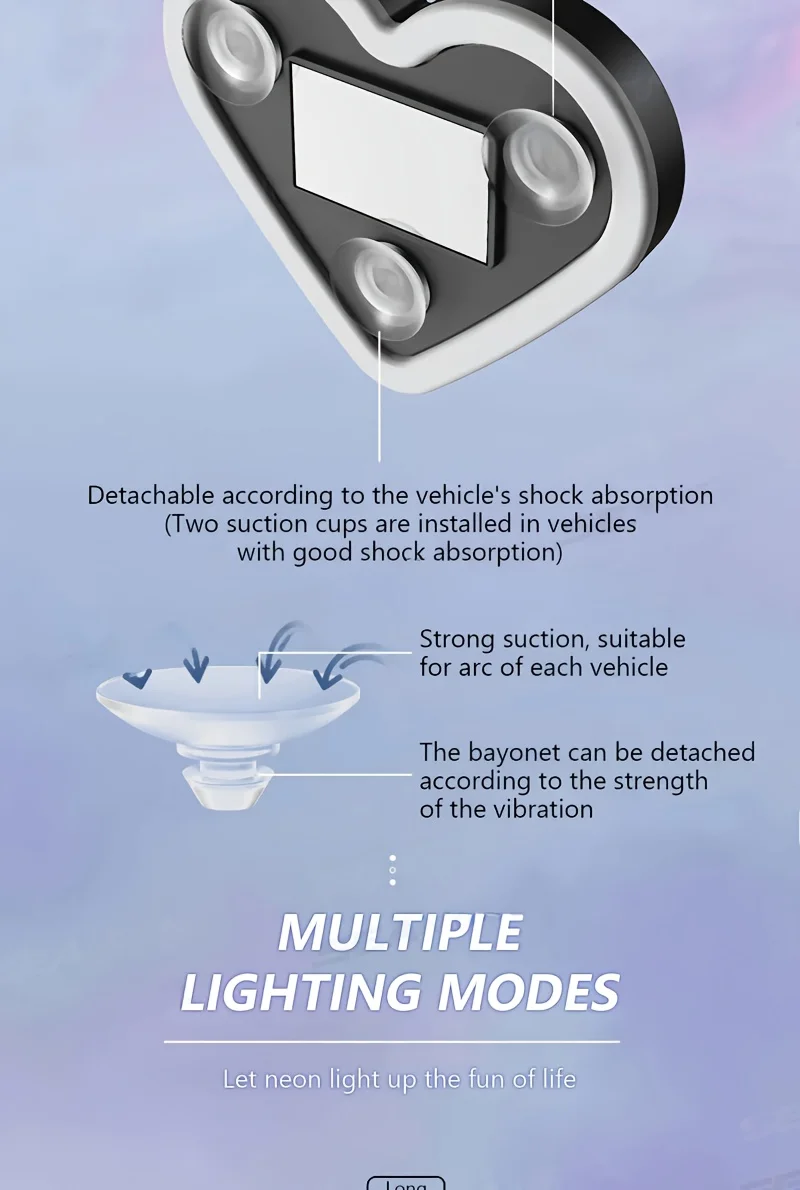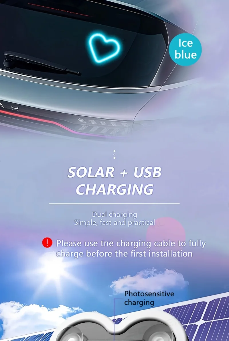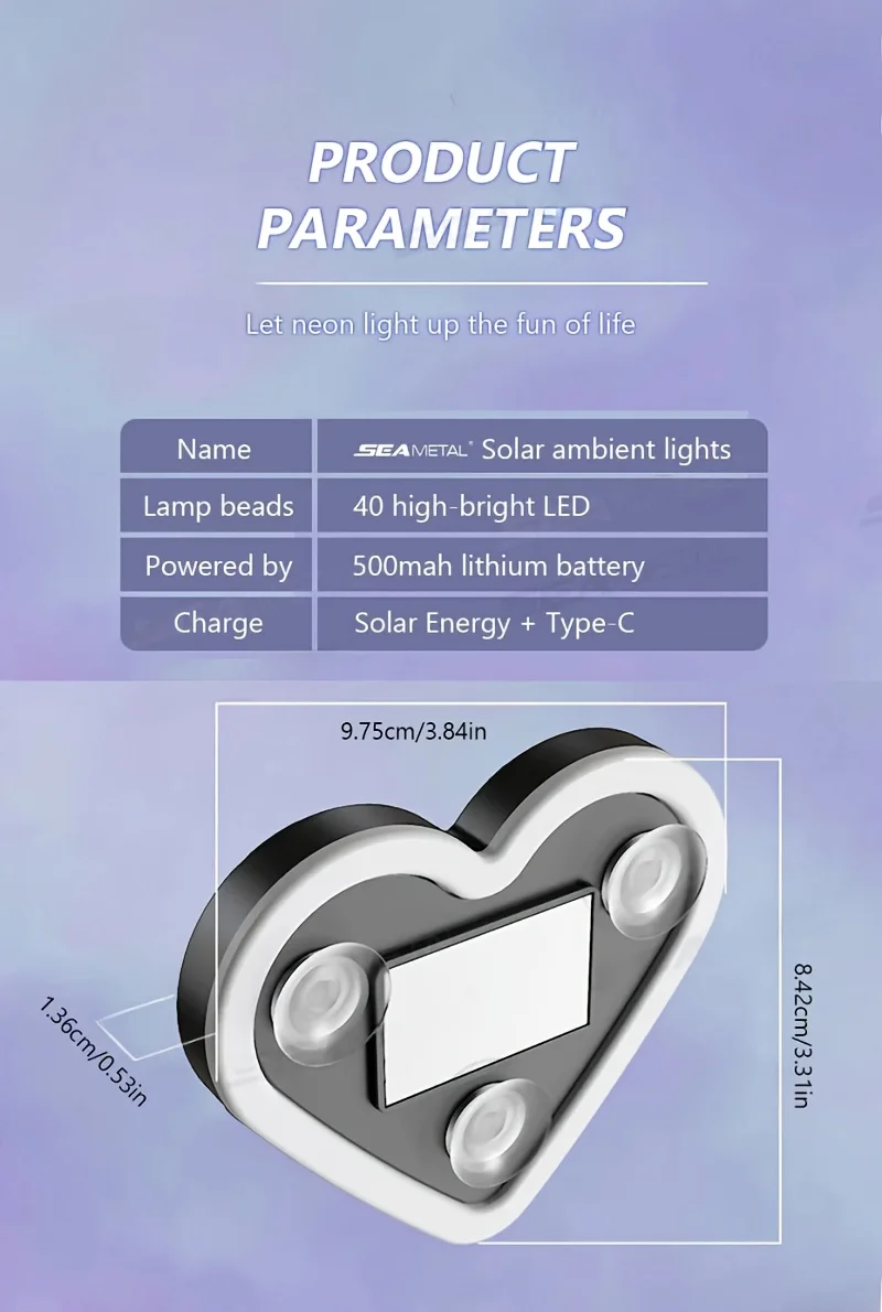 This product is a luminous heart-shaped LED window sign designed to add a personalized, vibrant glow to your vehicle's interior. These neon-style lights are the perfect accessory for drivers and car enthusiasts seeking to express their personality and style through creative automotive lighting.