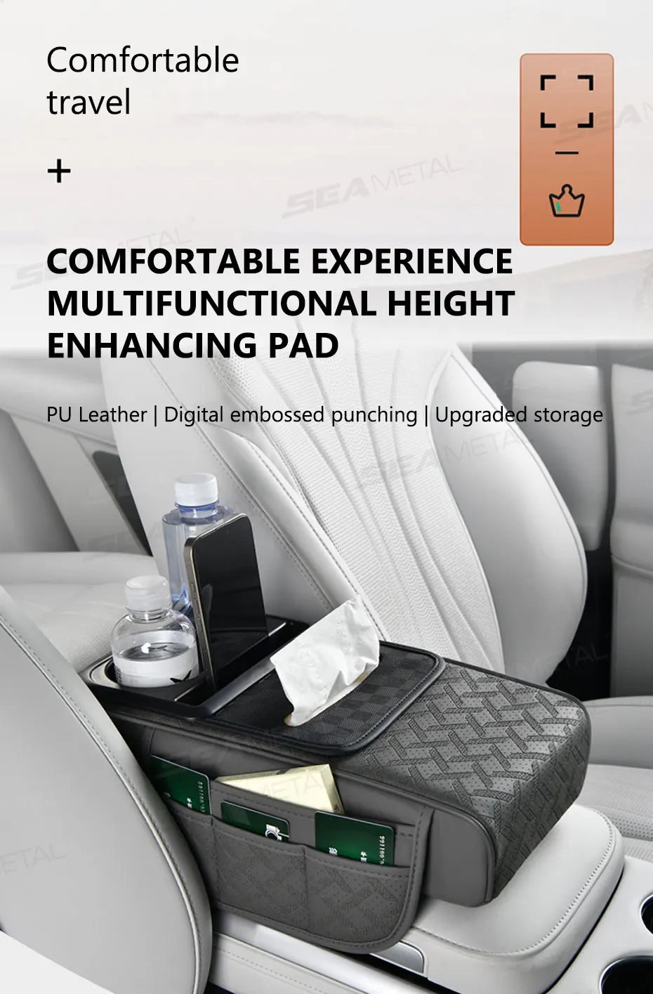 Elevate your driving experience with the Multifunctional PU Leather Armrest Cushion, designed to provide ergonomic support, stylish appeal, and practical storage solutions. Crafted from premium PU leather with detailed embossing, this cushion is soft, durable, and resistant to daily wear. The added height enhances comfort for both driver and passenger, reducing fatigue on long journeys.