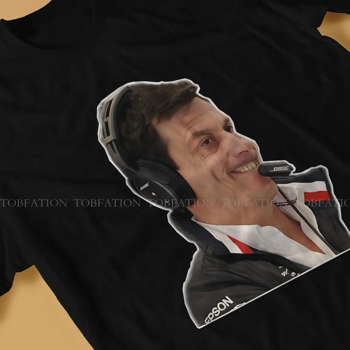 Design & Graphic: Features a vibrant, high-fidelity portrait of a legendary team principal wearing professional racing headsets. The graphic is centered on the chest with a clean white outline to provide maximum contrast against the solid fabric.