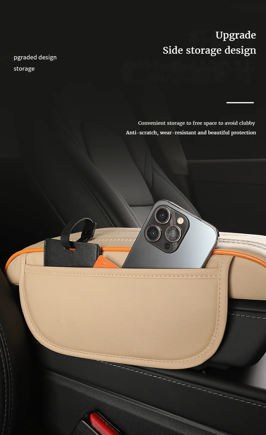 Premium Leather Car Armrest Cushion with Side Storage – Comfort Meets Functionality