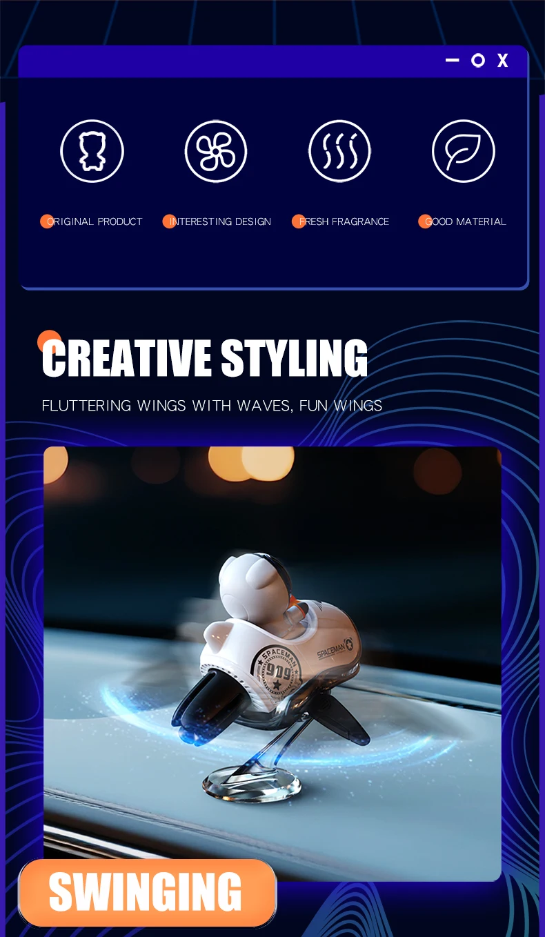 Bring the magic of outer space to your car with the Swinging Astronaut Car Air Freshener. Designed like a futuristic spacecraft with a cute astronaut figure, this diffuser swings gently with the car’s motion while releasing a refreshing fragrance. More than just an air freshener, it’s a decorative accessory that adds personality and style to any car interior.